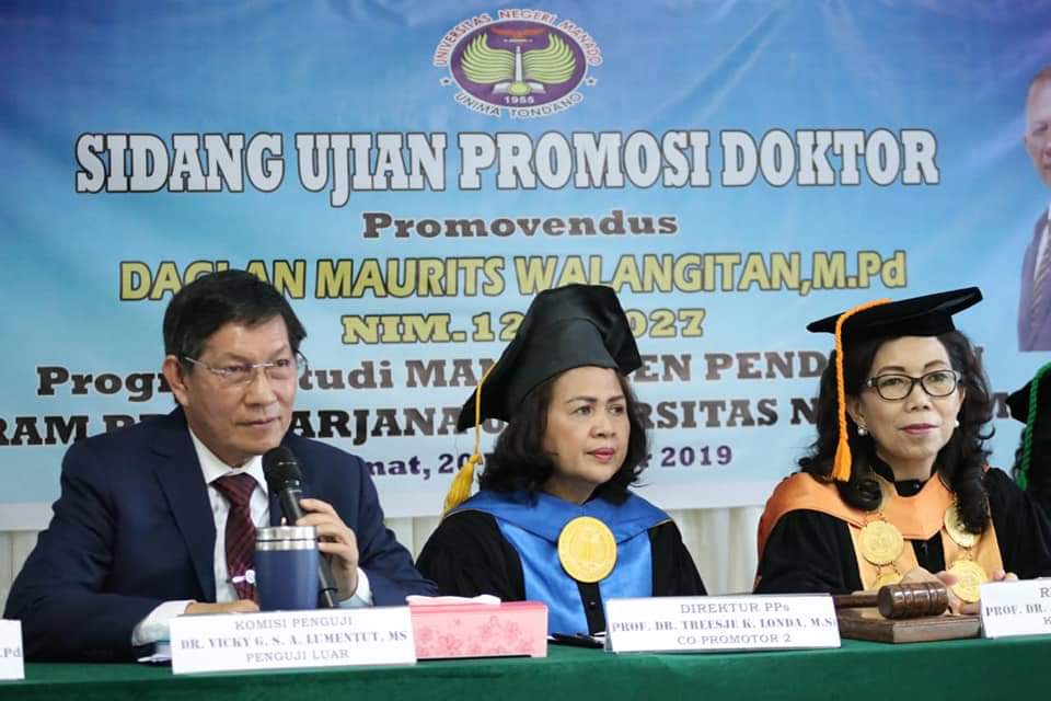 Kepada Promovendus Daglan M. Walangitan, yang adalah Kadis Pendidikan dan Kebudayaan Pemerintah Kota Manado.