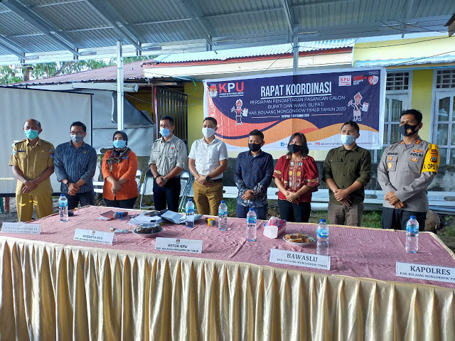 SUARASULUT.COM,BOLTIM- Komisi Pemilihan Umum (KPU) Kabupaten Bolaang Mongondow Timur (Boltim) menggelar rapat koordinasi (Rakor) persiapan pendaftaran Pasangan calon (Paslon) Bupati dan Wakil Bupati Kabupaten Bolaang Mongondow Timur (Boltim) 4-6 September 2020.