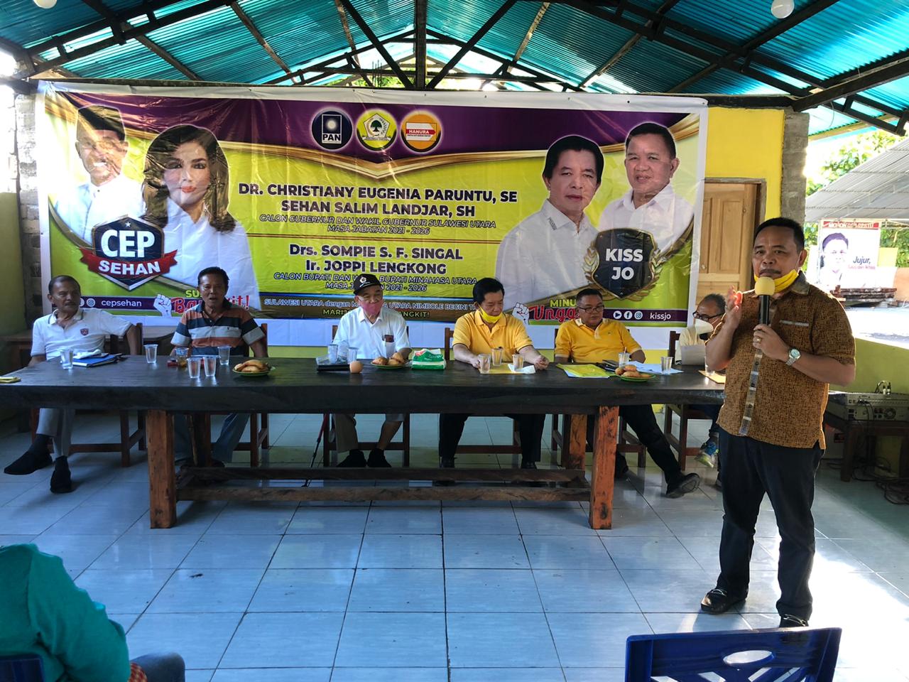 SUARASULUT.COM, MINUT- Arus dukungan secara sukarela untuk pasangan Drs.Sompie Singal MBA dan Ir.Joppi Lengkon MSi sebagai calon bupati dan wakil bupati Minahasa terus berdatangan, hal itu dikatakan Ketua Partai Golkar Minahasa Utara Drs.Denny Wowiling MSi disekertariat pemenangan CE-SSL dan KISS-Jo, Jumat (11/09/20).