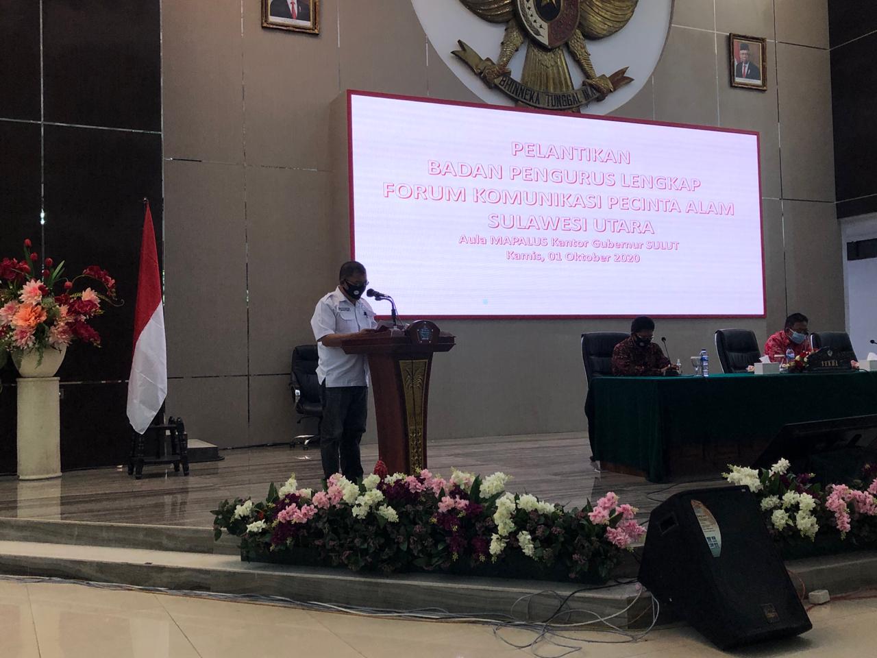 SUARASULUT.COM,MANADO–Pjs. Gubernur Sulawesi Utara (Sulut) Dr. Drs. Agus Fatoni, M.Si diwakili Sekretaris Daerah Provinsi (Sekdaprov) Sulut Edwin Silangen melantik Badan Pengurus Lengkap Forum Komunikasi Pencinta Alam (FKPA) Provinsi di Ruangan Mapalus, Kamis (01/10/20).