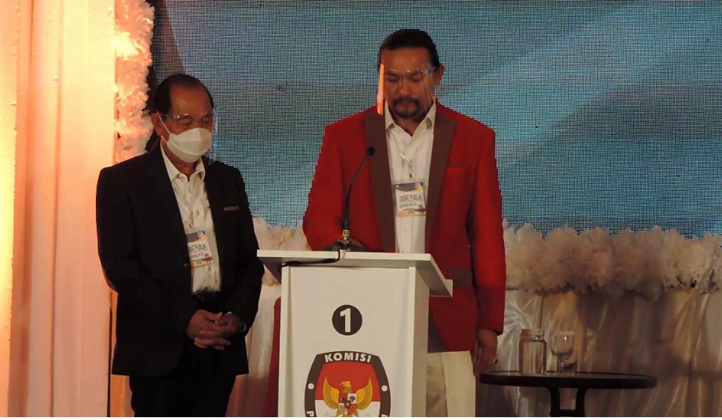 SUARASULUT.COM, BITUNG- Komisi Pemilihan Umum (KPU) kota Bitung menggelar debat calon wakil walikota Bitung, Sabtu (14/11/20), di Fave Hotel Bitung. Calon wakil walikota Bitung nomor urut 1, Martin Daniel Tumbelaka yang berpasangan dengan Maximilaan Jonas LOMBAN SE MSi, tampil sangat luar biasa dan sangat percaya diri saat debat bersama-sama calon wakil walikota yang lain. Dari semua materi visi misi dan pertanyaan dari calon lain, langsung dijawab oleh Tumbelaka yang dikenal dengan MDT.