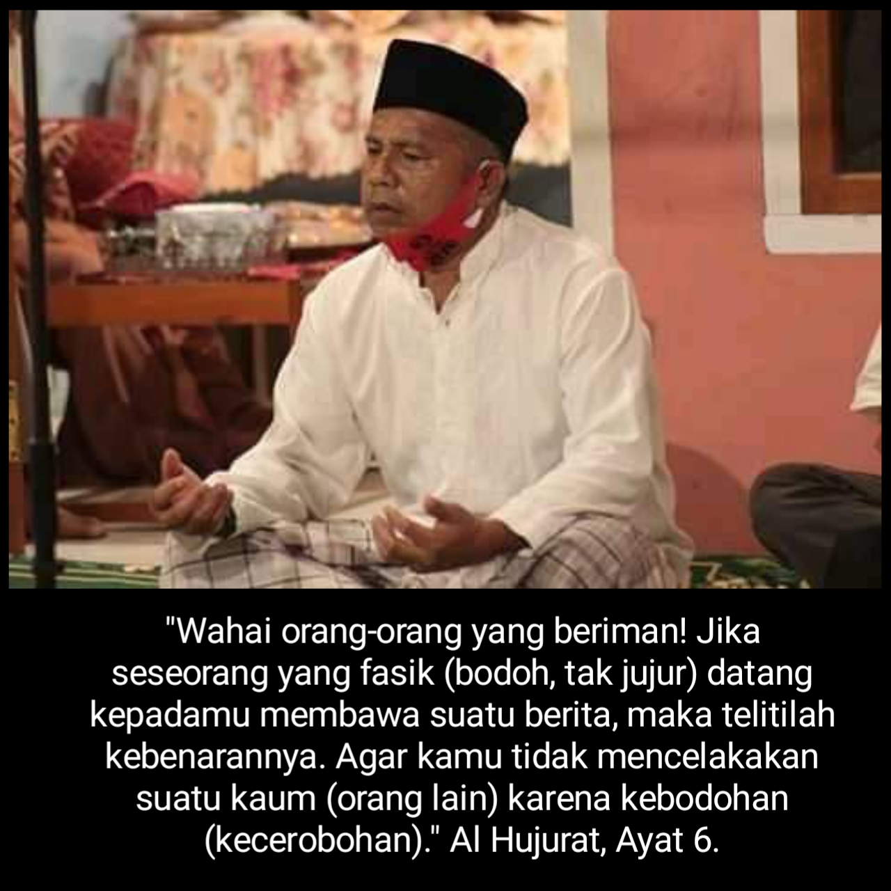 “Wahai orang-orang yang beriman! Jika seseorang yang fasik (bodoh, tak jujur) datang kepadamu membawa suatu berita, maka telitilah kebenarannya, agar kamu tidak mencelakakan suatu kaum karena kebodohan (kecerobohan), yang akhirnya kamu menyesali perbuatanmu itu.” (Al- Hujurat:6)