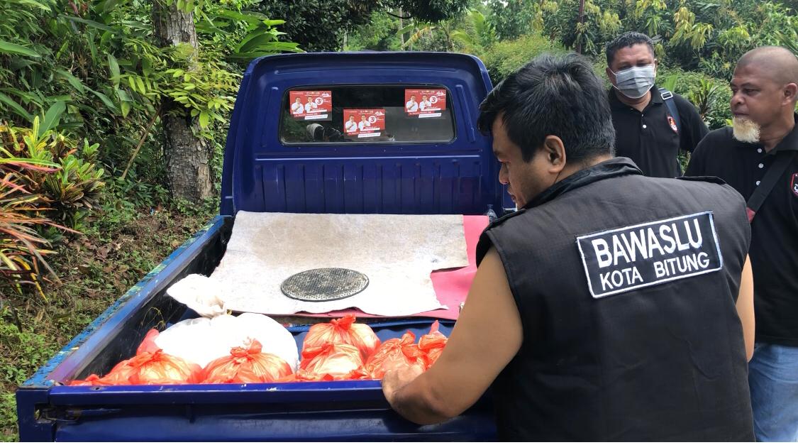 SUARASULUT.COM, BITUNG- Mobil Suzuki Carri Pick Up Nomor Polisi DB 8015 LJ lengkap dengan stiker salah satu paslon walikota dan walikota Bitung (MM-HH, dengan muatan 13 paket yang berisikan minuman sprite 1 lusin dan gula 1 kg yang di masukan di plastik berwarna merah, di tahan masyarakat diKelurahan Apela 2 kecamatan Ranowulu sekitar pukul 08:40, Selasa (08/12/20).
