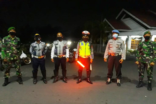 Petugas berpatroli sambil menyampaikan imbauan serta pembatasan aktivitas masyarakat maupun pelaku usaha.