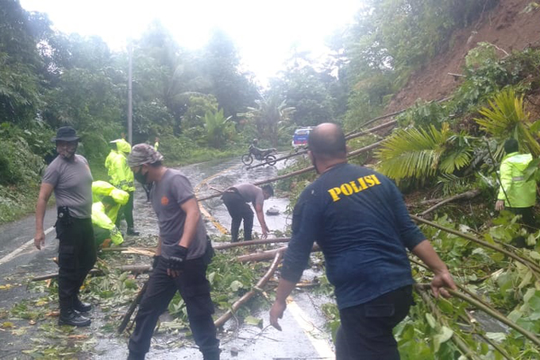Menyikapi kejadian tersebut, Polres Kepulauan Sangihe dan jajaran melakukan penanganan berupa pengalihan sementara arus lalu lintas di jalur tersebut untuk dilakukan pembersihan material longsoran.