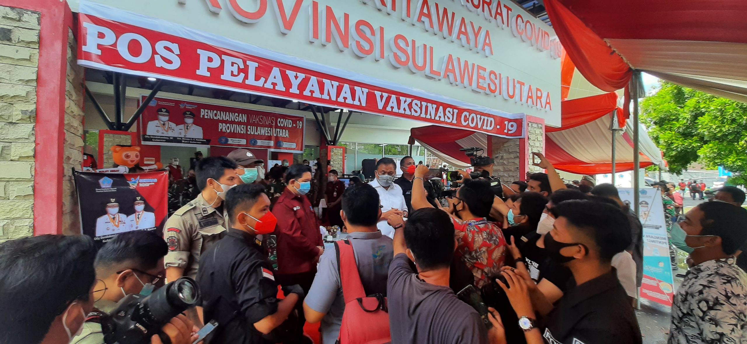 SUARASULUT. COM, MANADO– Bertempat di Rumah Sakit Lapangan Darurat Covid 19 Kita Waya Provinsi Sulawesi Utara (Sulut), Gubernur Provinsi Sulawesi Utara, Olly Dondokambey melakukan pencanangan vaksinasi Covid 19 di Sulut.