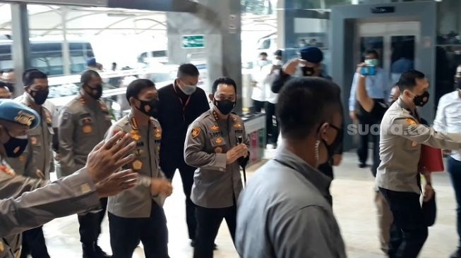 Pantauan Suara.com, keduanya tiba bersamaan dengan menggunakan mobil Mercedes-Benz Sprinter berkelir hitam sekitar pukul 09.51 WIB. Listyo tampak turun lebih dahulu dari mobil, lalu diikuti Idham di belakangnya.