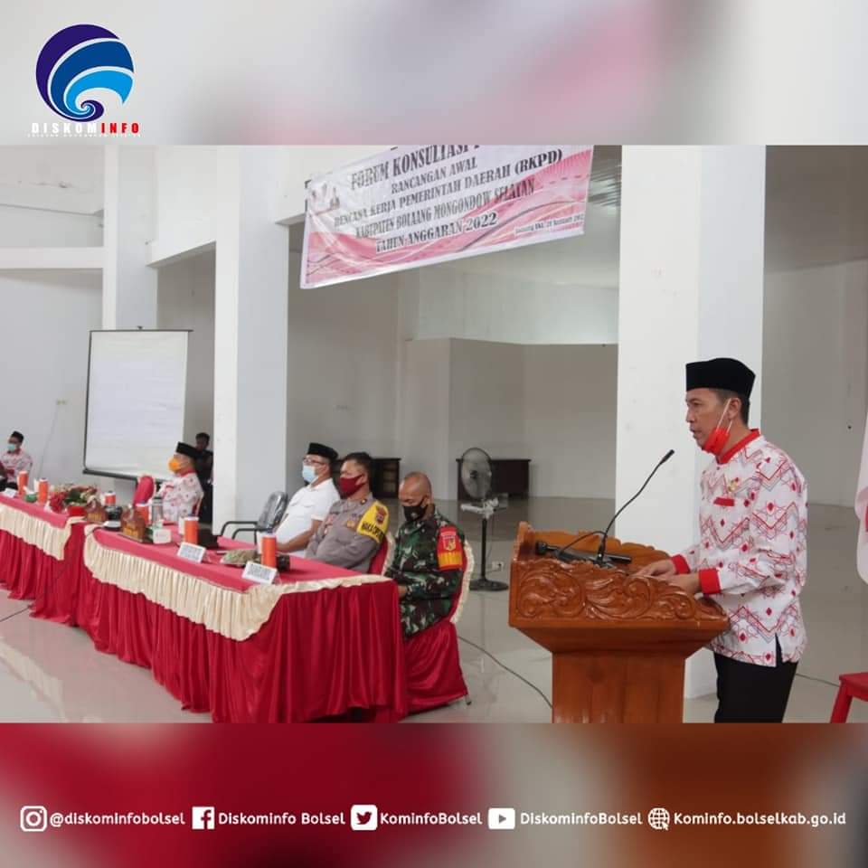 SUARASULUT.COM,BOLSEL– Bupati Bolaang Mongondow Selatan, Hi. Iskandar Kamaru, S.Pt membuka secara langsung Forum Konsultasi Publik Rancangan Awal penyusunan dokumen Rencana Kerja Pemerintah Daerah (RKPD) Kabupaten Bolaang Mongondow Selatan Tahun 2022, di Aula Kantor Bupati Panango.