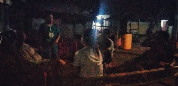 Warga yang panik berhamburan keluar rumah saat gempa dan listrik di Melonguane padam.