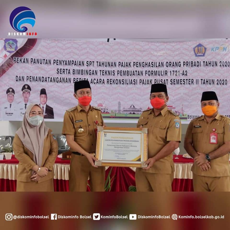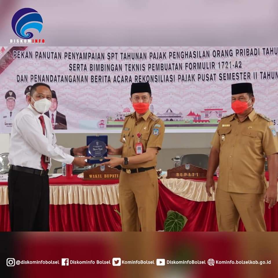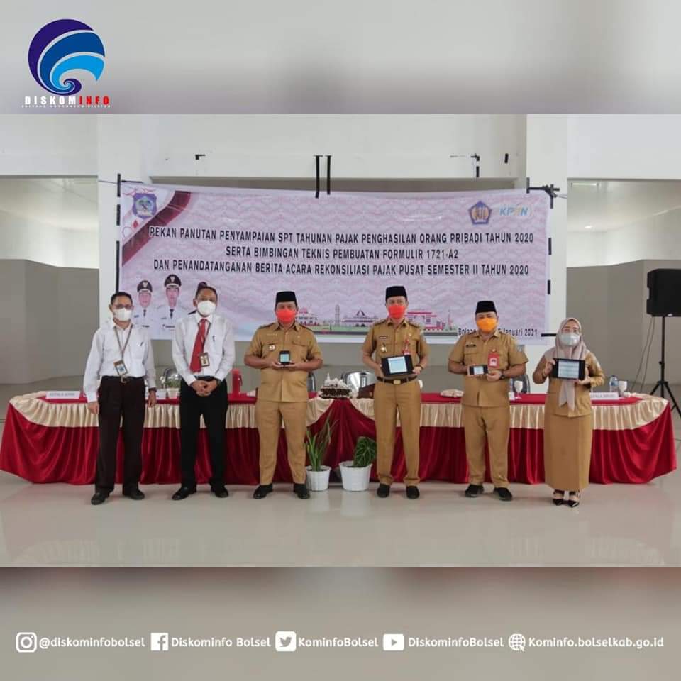 Serta Bimtek Penyampaian SPT Tahunan melalui e-Filling kepada wajib pajak ASN Pemkab Bolsel yang diselenggarakan di Aula Kantor Bupati, Kompleks Perkantoran Panango pada Senin (25/01/2021).