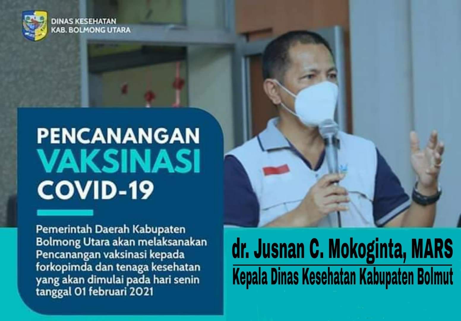 Kepala Dinas Kesehatan Bolmut, dr. Jusnan C. Mokoginta, MARS, “bahwa pemberian vaksinasi covid-19 ini akan dilaksanakan fasilitas pelayanan kesehatan rumah sakit dan puskesmas, oleh tenaga kesehatan dokter, perawat, atau bidan yang kompeten.” jelasnya