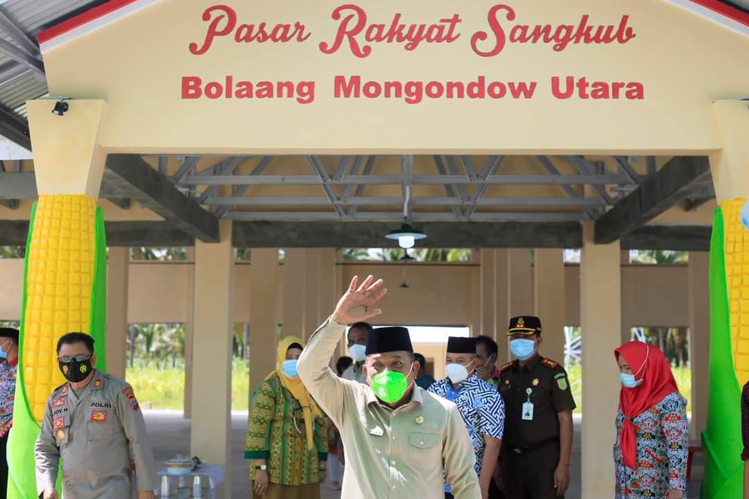 SUARASULUT.COM,BOLMUT– Bupati Bolmut Drs. Hi. Depri Pontoh didampingi wakil bupati Drs. Hi. Amin Lasena, MAP meresmikan bangunan pasar rakyat Sangkub, desa Sangkub III, Kecamatan Sangkub.