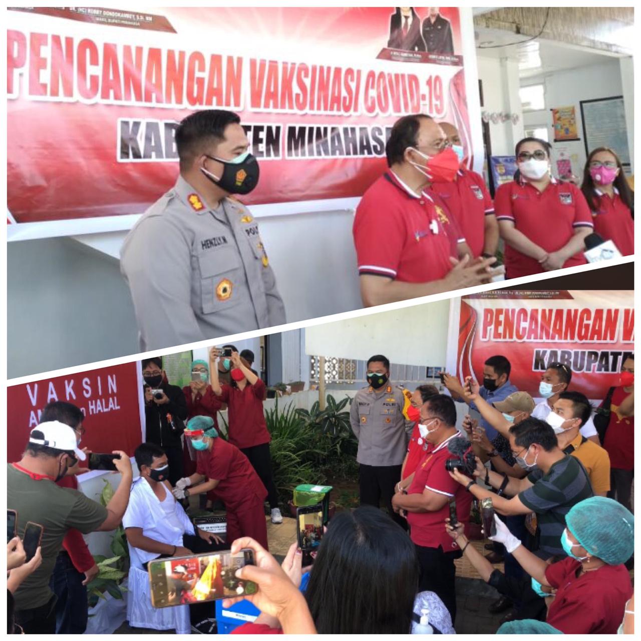 Dari pantauan media ini, Kapolres Minahasa AKBP Henzly Moningkey SIK MSi bersama Kasat Reskrim Polres Minahasa AKP Sugeng Wahyudi Santoso SH, SIK melihat langsung pelaksanaan kegiatan Pencanangan Vaksinasi Covid-19 yang dilakukan oleh Pemerintah Kabupaten Minahasa melalui Dinas Kesehatan.