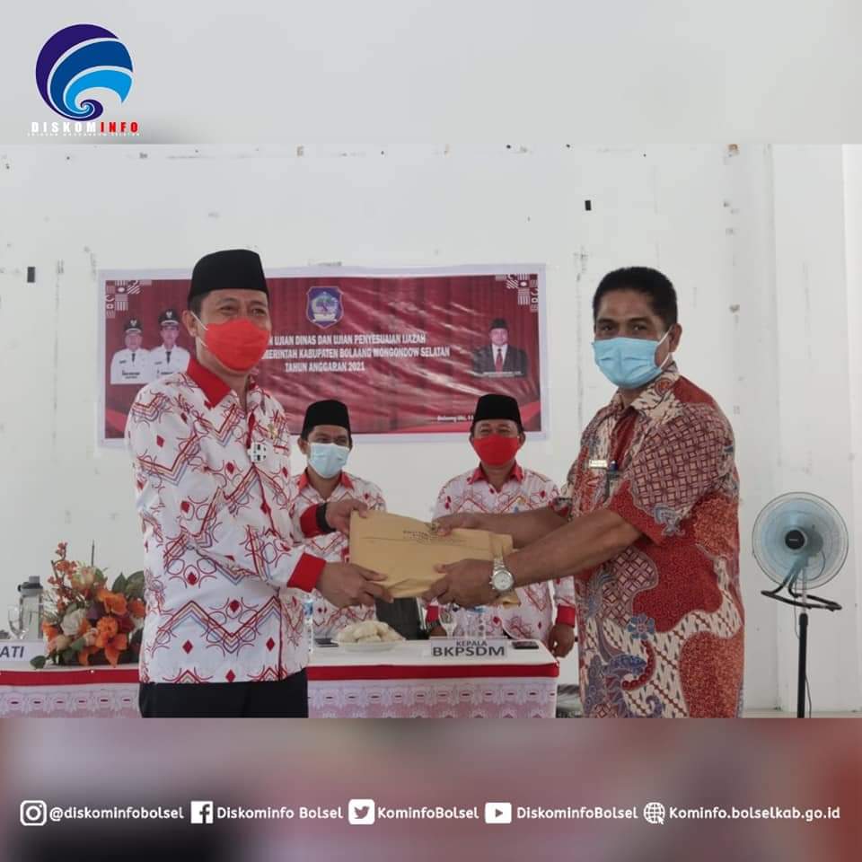 SUARASULUT.COM,BOLSEL–Bupati H. Iskandar Kamaru SPt membuka secara resmi kegiatan Ujian Dinas dan Ujian Kenaikan Pangkat Penyesuaian Ijazah T.A 2021 yg digelar di Aula Kantor Bupati, Kompleks Perkantoran Panango pada Kamis (11/02/2021).
