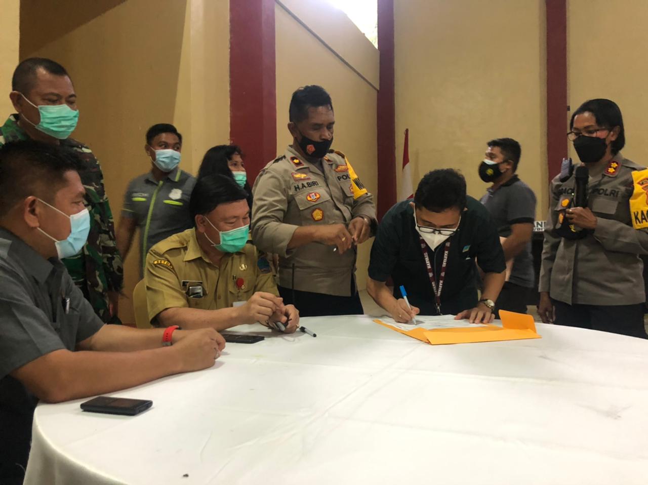 SUARASULUT.COM, MINUT- Pertemuan pimpinan perusahaan PT Meares Soputan Maining (MSM) dan PT Tambang Tondano Nusajaya (TTN) bersama penambang emas dan pemilik lahan di wilayah tambang rakyat (WPR) desa Tatelu kecamatan Dimembe yang di fasilitasi Kapolres Minahasa Utara AKBP Grace Rahakbau SIK MSi di aula Polres Minut, Senin (22/02/21), berhasil mendapatkan 6 poin kesepakatan bersama.