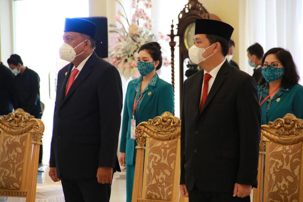 SUARASULUT.COM,MANADO– Ketua TP. PKK Prov Sulut Rita Dondokambey-Tamuntuan di gedung Graha H.V Worang Bumber, Jumat (26/02/21), melantik lima Ketua TP. PKK Kabupaten/Kota.