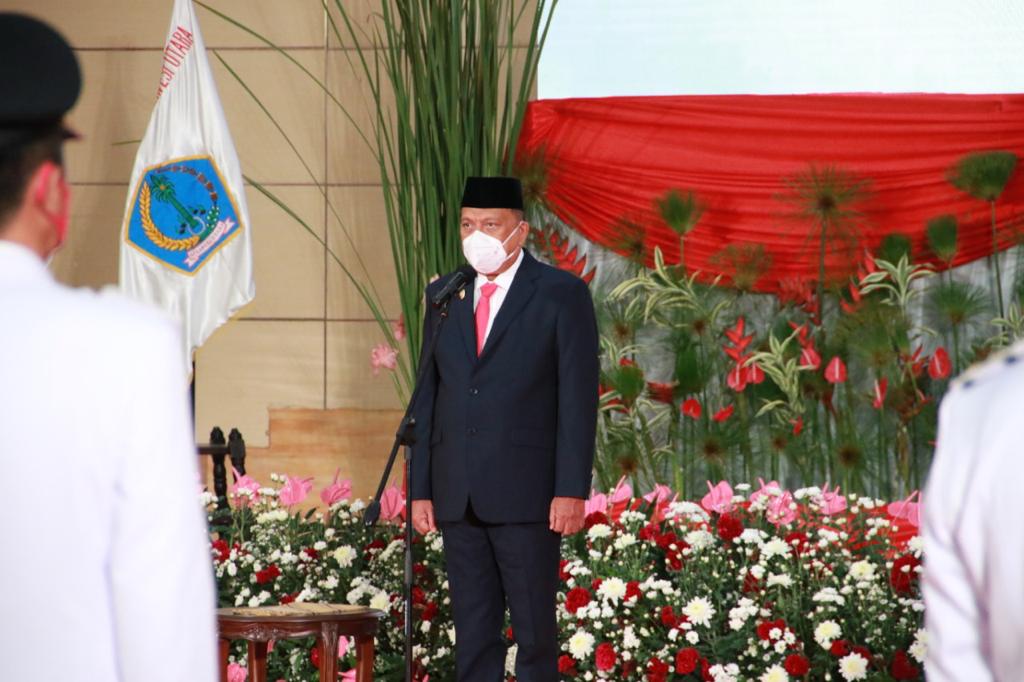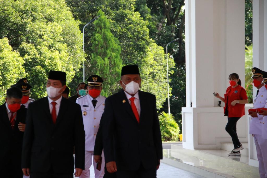 Pelantikan diawali dengan Pembacaan Keputusan Mendagri RI Nomor: 131.71/294 tahun 2021 tanggal 22 Februari 2021 dan nomor:131.71/374 tahun 2021 tanggal 24 Februari 2021 tentang Pemberhentian Pengangkatan Bupati/Wakil Bupati, Walikota/Wakil Walikota oleh Karo Pemerintahan dan Otda Jemmy Kumendong.