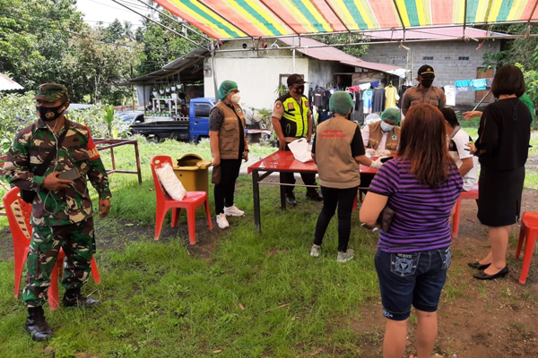 SUARASULUT.COM,MINUT– Menyikapi semakin tingginya angka penyebaran Covid-19, Polsek Airmadidi bersinergi dengan Pemerintah Kecamatan Airmadidi, Koramil 1310-06/Airmadidi, Puskesmas Airmadidi, serta Pemerintah Desa melaksanakan Operasi Yustisi penegakan Protokol Kesehatan di Posko Kampung Tangguh Covid-19, di Desa Sawangan dan Tanggari, Kecamatan Airmadidi.