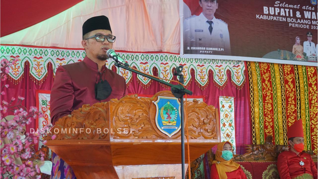 Bupati H. Iskandar Kamaru S.Pt dalam sambutannya mengucapkan terima kasih di karenakan kedatanganya di sambut dengan adat Mongondow usai dilantik sebagai Bupati dan Wabup Bolsel periode 2021-2024. jabatan ini merupakan amanah dari Allah SWT dan rakyat Bolsel untuk dilaksanakan dengan adil dan bertanggung jawab.