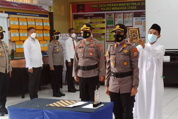Kapolres mengucapkan terima kasih kepada Kompol Pandelaki atas pelaksanaan tugas selama menjabat Kabag Sumda Polres Minut, dan berharap semoga semakin sukses di tempat tugas yang baru.