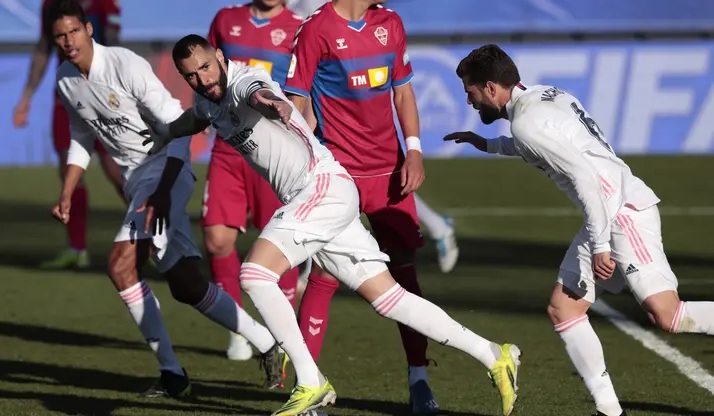 El Real bersua Elche di Estadio Alfredo Di Stefano, Sabtu (13/3/2021) malam WIB. Meski bermain di kandang sendiri, Madrid mendapat perlawanan sengit dari Elche.