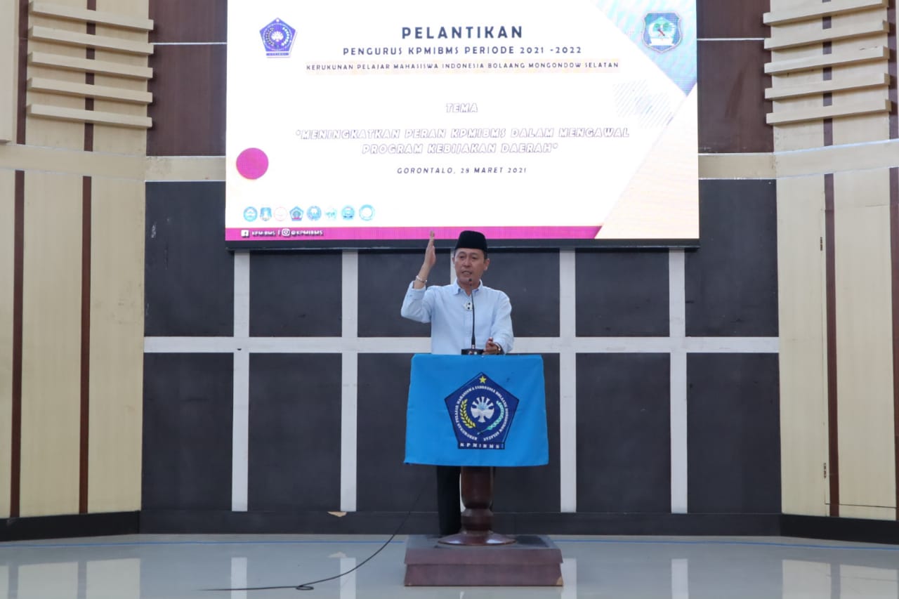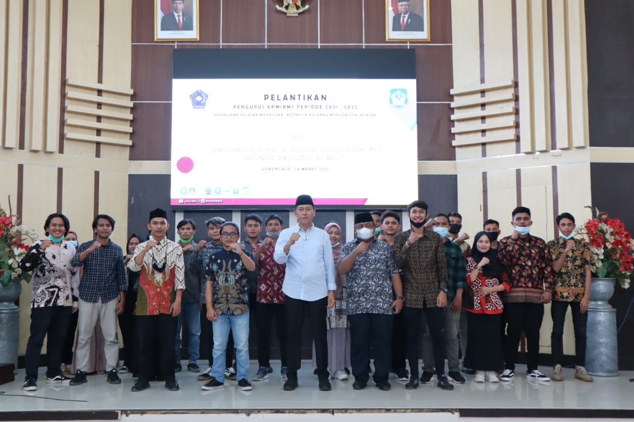 SUARASULUT.COM,BOLSEL-Bupati kabupaten bolaang Mongondow Selatan H.Iskandar Kamaru S.pt, di dampingi Kabag Protokol, Saipul Botutihe hadiri acara pelantikan pengurus Kerukunan Pelajar Mahasiswa Indonesia Bolaang Mongondow Selatan (KPMIBMS) Periode 2021-2022, bertempat di aulah kantor walikota Gorontalo, Minggu,(28/03/2021).