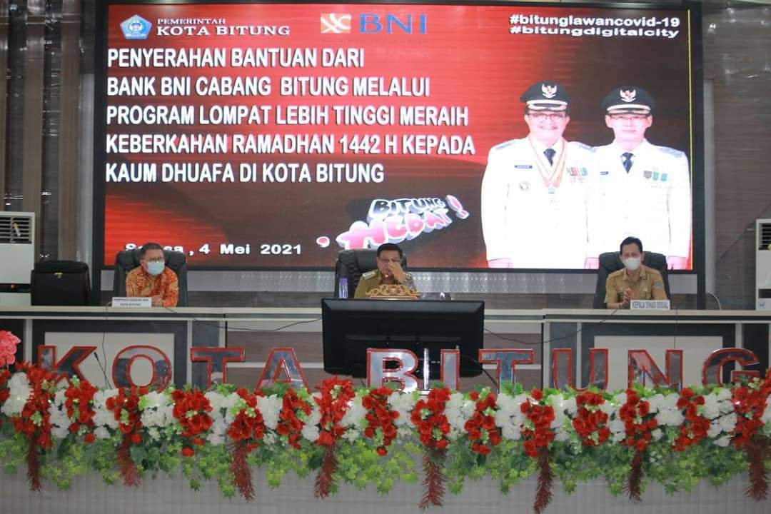 Bantuan tersebut diberikan oleh bank BNI kepada 70 orang masyarakat Kota Bitung kaum dhuafa yang diwakili oleh 20 Orang.