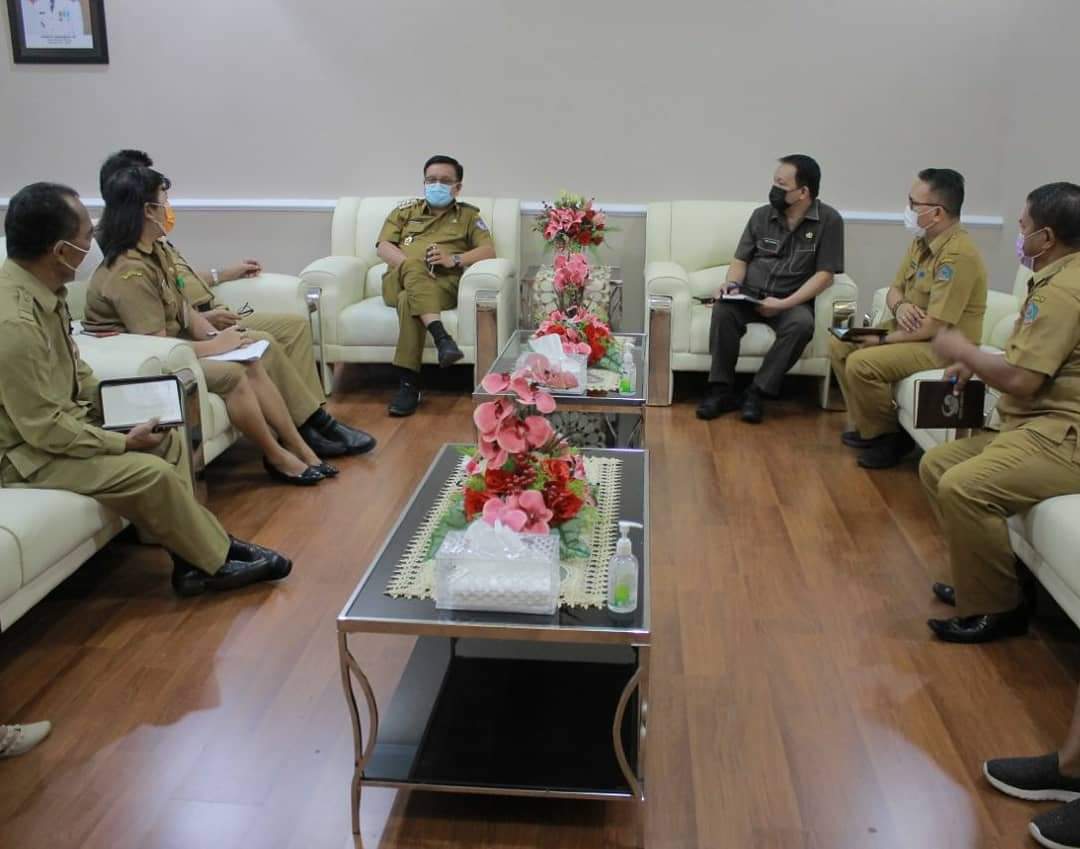 SUARASULUT.COM,BITUNG–Walikota Ir. Maurits Mantiri, MM, menerima kunjungan Kepala Cabang Dinas Pendidikan Minut-Bitung, Ernes Emor, Kepala Sekolah SMA LPM Motto, Camat Lembeh Utara, Lurah Motto, dan salah satu orang tua Wali Murid SMA LPM Motto di ruang kerja walikota.