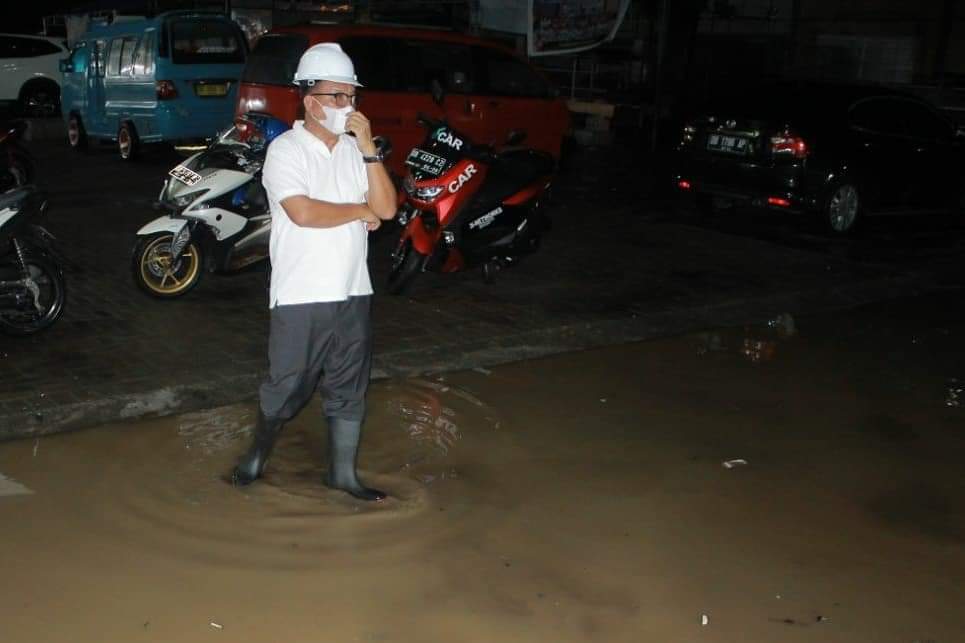 SUARASULUT.COM,BITUNG– Walikota Ir. Maurits Mantiri, M.M. melaksanakan peninjauan lokasi banjir di depan pintu masuk pelabuhan Samudra Bitung.