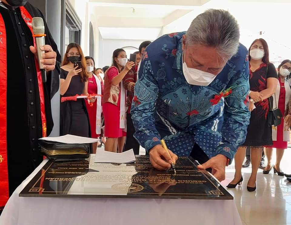 SUARASULUT.COM,MINSEL–Bupati Minahasa Selatan Franky Donny Wongkar, SH., menghadiri Ibadah di GMIM Jemaat Kalvari Kinaweruan sekaligus meresmikan Gedung Gereja di Jemaat Kalvari Kinaweruan Wilayah Tompasobaru Dua bersama Ketua Sinode GMIM Pdt. DR. Hein Arina sebagai Khadim sekaligus mentahbiskan Gedung Gereja Kalvari Kinaweruan.