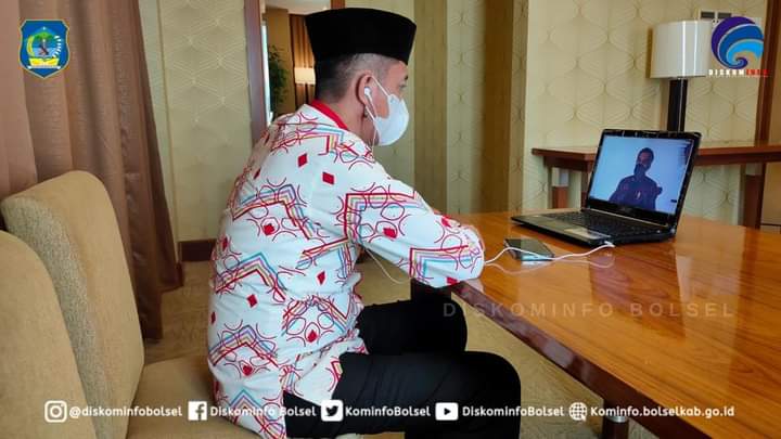SUARASULUT.COM,BOLSEL–Bupati H. Iskandar Kamaru SPt mengikuti Rapat Koordinasi Nasional Pengawasan Intern Pemerintah Tahun 2021 melalui virtual meeting di Swiss-Belhotel Maleosan Manado pada Kamis (27/05/2021).