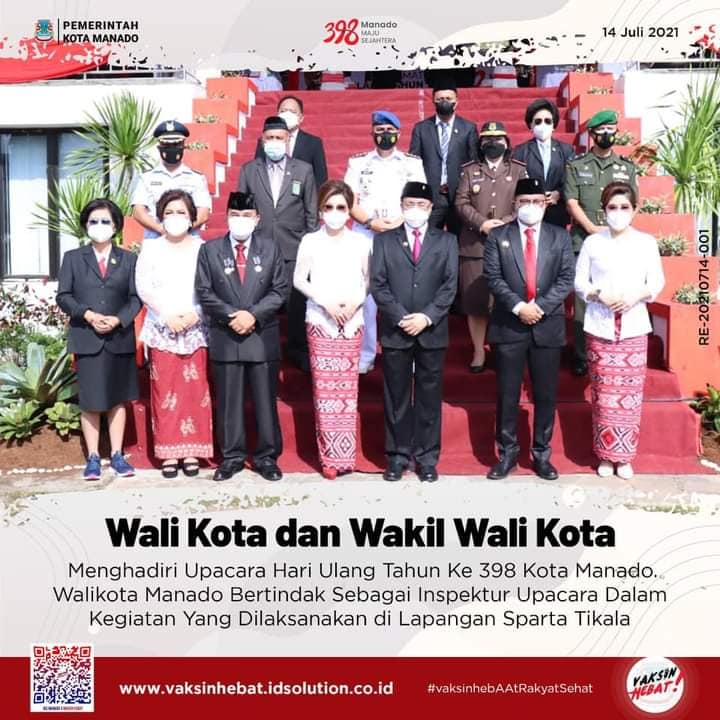 SUARASULUT.COM,MANADO–Wali Kota Manado Andrei Angouw dan Wakil Wali Kota Manado dr. Richard Sualang menghadiri Upacara Hari Ulang Tahun Ke 398 Kota Manado.
