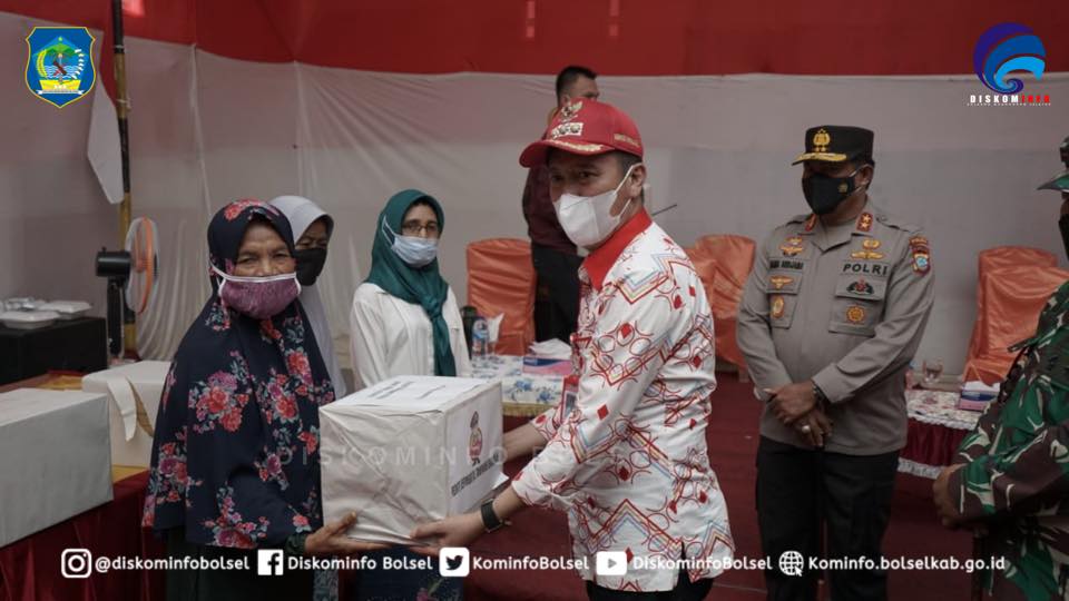 SUARASULUT.COM,BOLSEL–Bupati H. Iskandar Kamaru SPt dan Wabup Deddy Abdul Hamid menyambut kunjungan Kapolda Sulut Irjen Nana Sudjana dalam rangka Peletakan Batu Pertama pembangunan Mako Polres Bolsel yg dirangkaikan dengan Peninjauan Gerai Vaksinasi Presisi dalam program Serbuan Vaksinasi Nasional TNI-POLRI di Desa Tolondadu dan Desa Tabilaa Kec. Bolaang Uki serta pembagian sembako pada Kamis (15/07/2021).