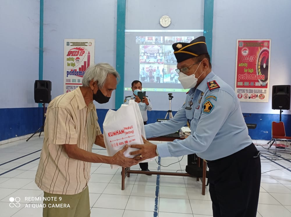 “Kumham Peduli Kumham Berbagi’’ yang digulirkan secara serentak secara nasional, Kamis (29/07). Setelah sebelumnya Kalapas Manado, Amri Langkamane, Bc.IP, SPd dengan pejabat struktural mengikuti tayangan virtual dari Jakarta yang dipusatkan di Aula Lapas, dilanjutkan dengan pembagian paket Sembako kepada warga sekitar Lapas dan ASN Kemenkumham Lapas Manado yang terkena dampak langsung dari Pandemi Covid-19. Ada dua sesi pembagian 25 paket bantuan tersebut, yakni perwakilan warga dan petugas yang terdampak langsung Covid-19 serta warga diluar Lapas. ‘’Kami total mendukung program Bapak Menteri Kemenkumham, apalagi untuk berbagi kepada mereka-mereka yang terdampak Covid-19,’’ ujar Kapalas Amri Langkamane usai pelaksanaan Virtual.