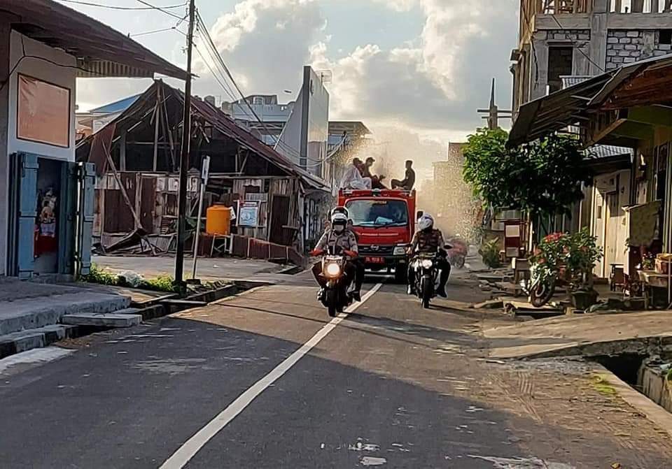 Pakai Mobil Damkar, Pasar dan Pelabuhan di Tagulandang Disemprotkan Disinfektan