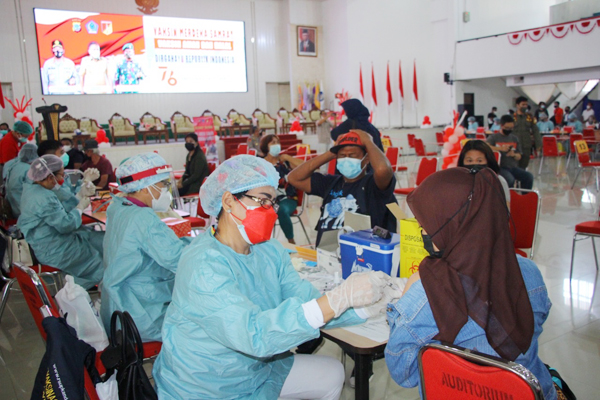 Vaksinasi yang bertajuk Vaksin Merdeka Samrat ini digelar dalam rangka menyambut Hari Ulang Tahun ke-76 Republik Indonesia, dengan melibatkan sebanyak 20 Tim Vaksinator atau sekitar 200 Tenaga Kesehatan dari Polri, TNI dan Dinas Kesehatan.