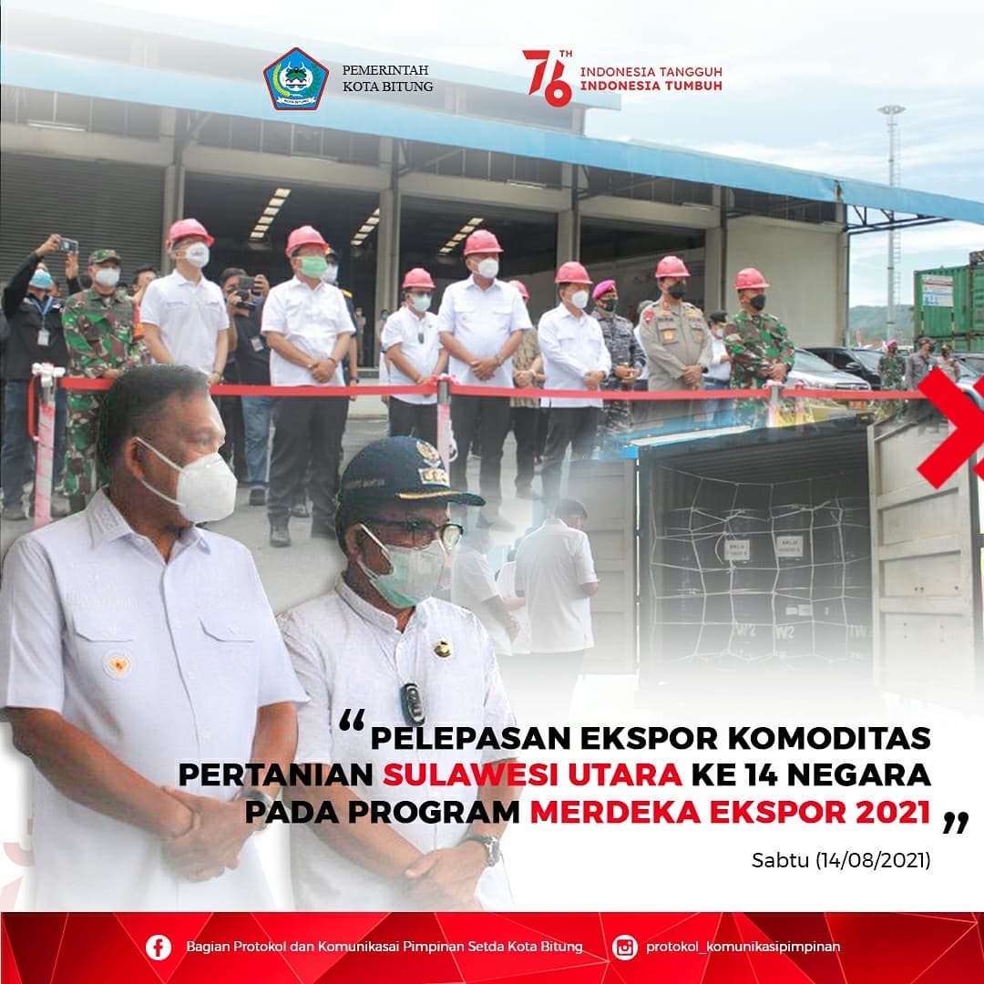 Pelepasan Merdeka Ekspor 2021 dari 17 titik pelabuhan dan bandara di Indonesia yang dilakukan secara virtual oleh Presiden Jokowidodo dari Istana Bogor, juga dihadiri oleh Gubernur Sulawesi Utara Olly Dondokambey, SE., Ketua DPRD Provinsi Sulut, Kapolda, Danrem 131 Santiago, kabakamla, Danlantamal VIII, Danlanud Sri, dari terminal peti kemas Bitung. Kegiatan tersebut bertujuan untuk membuka pasar ekspor para petani daerah sulawesi utara ke luar negeri.(angky)