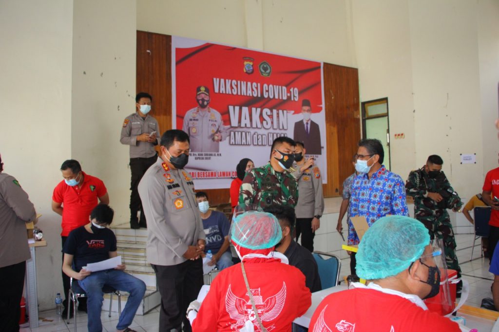 Pelaksanaan vaksinasi kali ini ditinjau oleh Kapolda Sulut Irjen Pol Nana Sudjana didampingi Danrem 131/Santiago Brigjen TNI Prince Meyer Putong, Rektor IAIN Delmus Puneri Salim dan beberapa PJU Polda.