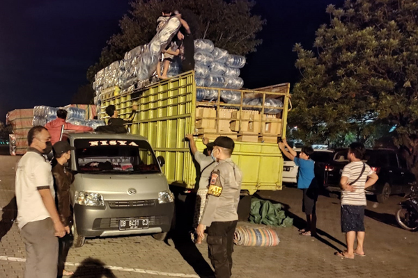 Petugas melakukan pemeriksaan terhadap barang-barang muatan kendaraan maupun barang bawaan penumpang, termasuk memeriksa surat hasil rapid test antigen.