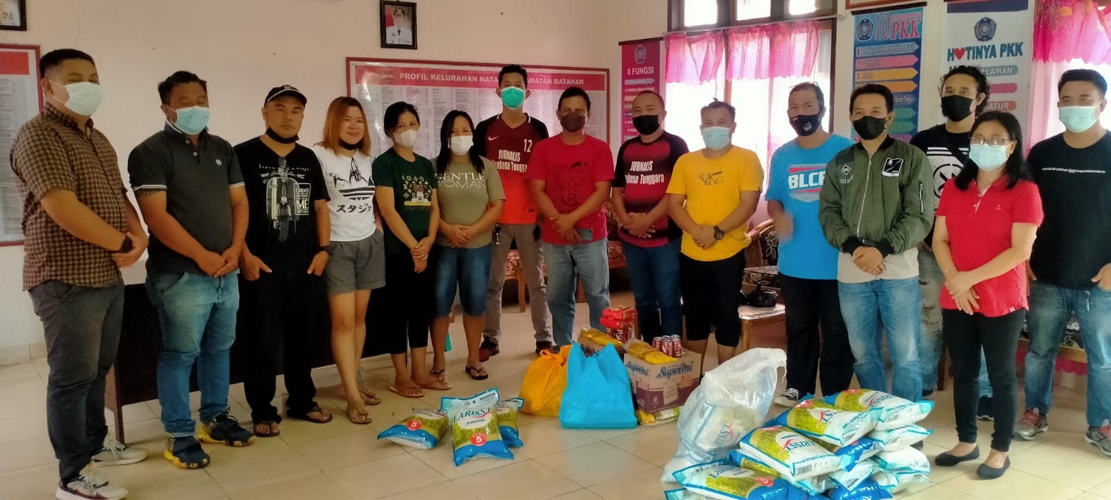 BANTUAN: Jurnalis Minahasa Tenggara (JMT) bersama Persatuan Wartawan Indonesia (PWI) dan Ikatan Wartawan Online (IWO) Mitra, salurkan bantuan berupa puluhan paket beras dan diterima langsung korban terdampak.(foto:SSC)