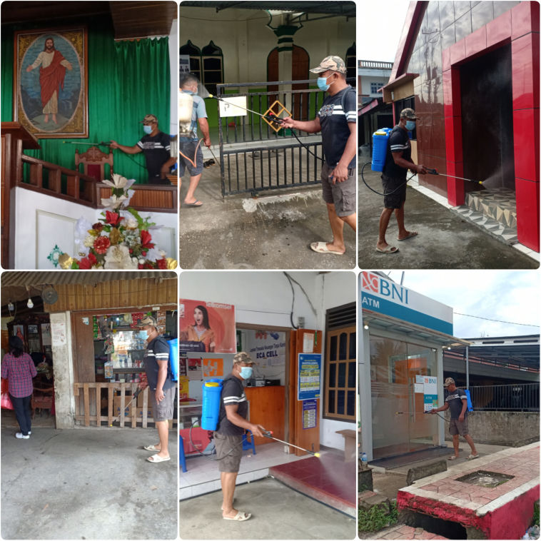 Dengan semangat untuk memberikan perlindungan kepada masyarakat dari serangan covid19, saat ini Pemdes Tombatu Tiga Tengah yang dipimpin langsung oleh Hukum Tua Frits H Polii, sedang merealisasikan anggaran yang diperuntukan untuk penanganan covid19 dengan melakukan penyemprotan desinfektan.
