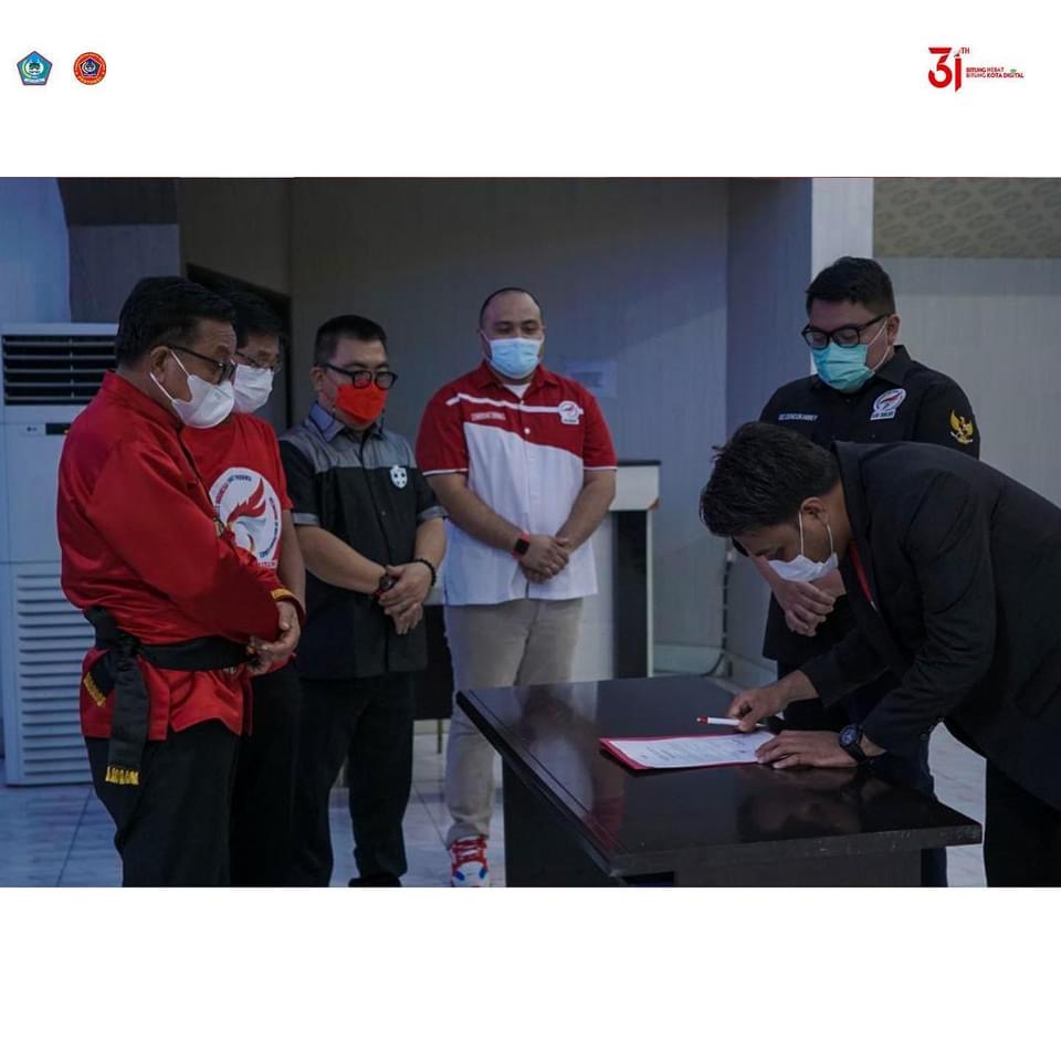 PELANTIKAN: Wali Kota Bitung Ir. Maurits Mantiri M.M bersama Wakil Wali Kota Hengky Honandar S.E Menghadiri Pelantikan Pengurus E-Sport Kota Bitung.(foto:humas)