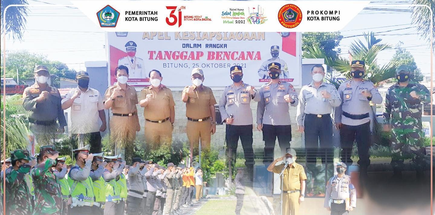 APEL: Wali Kota Bitung Ir. Maurits Mantiri M.M menjadi Inspektur Upacara Kesiapsiagaan menghadapi bencana tahun 2021.(foto:humas)