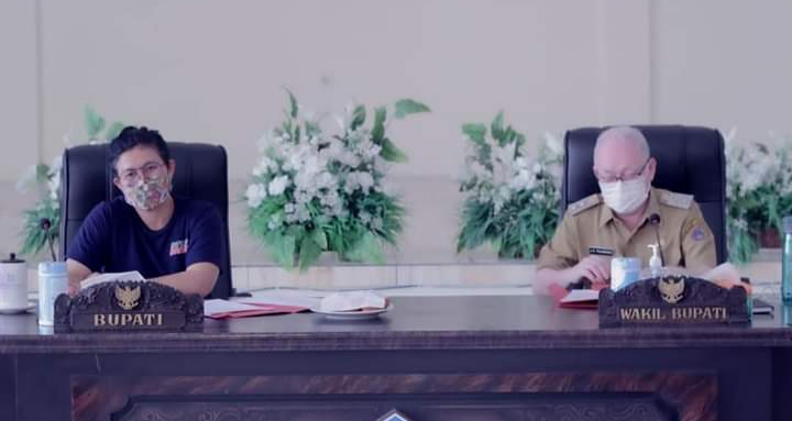 EVALUASI:Bupati Kepulauan Sitaro Evangelian Sasingen memimpin Rapat Persiapan Upacara Peringatan Hari Sumpah Pemuda Ke 93 Tahun 2021.(foto:humas)