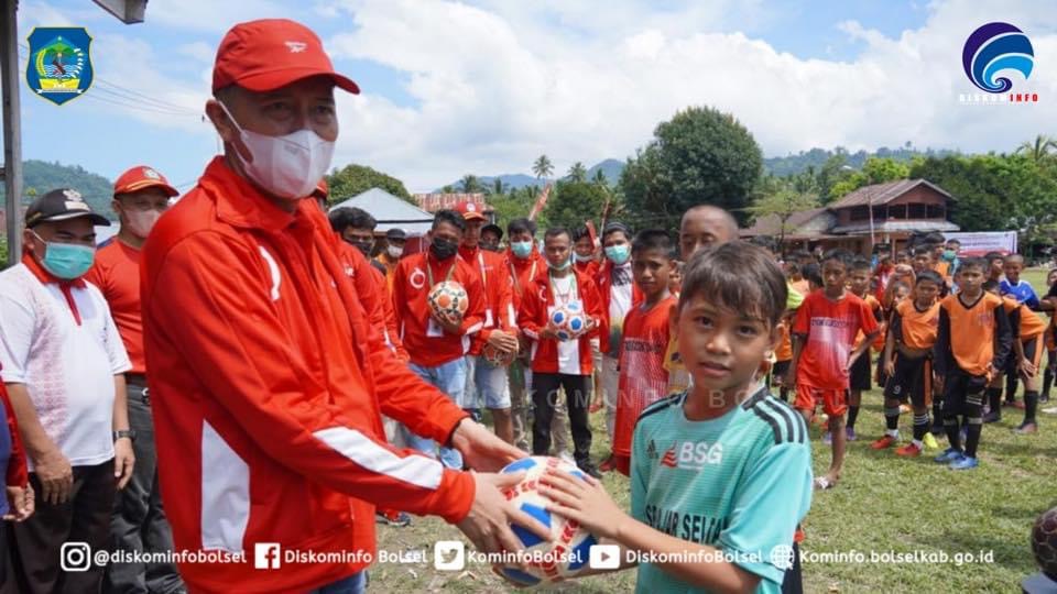 SUARASULUT.COM,BOLSEL—Bupati H. Iskandar Kamaru SPt membuka Kejuaraan Sepak Bola U-21 Kerjasama antara Askab PSSI Bolsel dan IPHI Kab. Bolsel di Lapangan Desa Nunuk Kecamatan Pinolosian Sabtu (30/10/2021).
