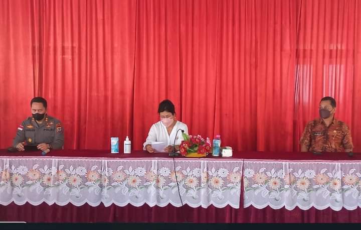 Rakor tersebut dipimpin Asisten Pemerintahan dan Kesra, Herry Lano, SE.MM.,M.Th, Kapolres Sitaro, AKBP Hanjen Ratag,i Kepala Dinas Kesehatan, dr. Samuel Raule, M.Kes, Kepala Dinas Pemberdayaan Masyarakat Desa, Marlon Dalentang, S.Sos.