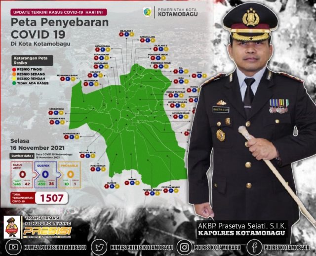 AKBP Prasetya Sejati, SIK sendiri menjelang berakhirnya masa tugas sebagai Kapolres Kotamobagu ikut bersyukur karena akan meninggalkan Kota Kotamobagu, peta sebaran tertanggal 16 November 2021 keseluruhan Desa-desa dan Kelurahan menghijau.