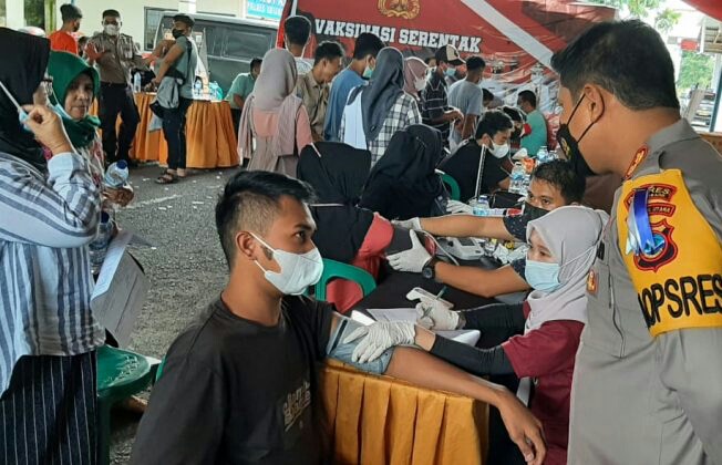 “Kita bersyukur antusias masyarakat sangat tinggi untuk mengikuti vaksinasi, terlihat dari jumlah yang mencapai 1.177 orang peserta yang ikuti di vaksinasi Covid-19,” ucap AKBP Irham Halid.
