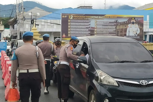 Selain personel Polri, masyarakat yang masuk pun tak luput dari pemeriksaan personel Propam yang sudah bersiaga sejak pukul 06.00 Wita di pintu gerbang Mapolda.