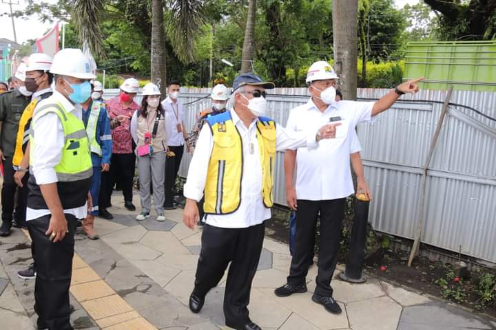 Kehadiran Menteri, Gubernur, Walikota dan Wakil Walikota beserta rombongan dilokasi ini untuk melihat progres pembangunan penataan kawasan ini yang sementara dilakukan.
